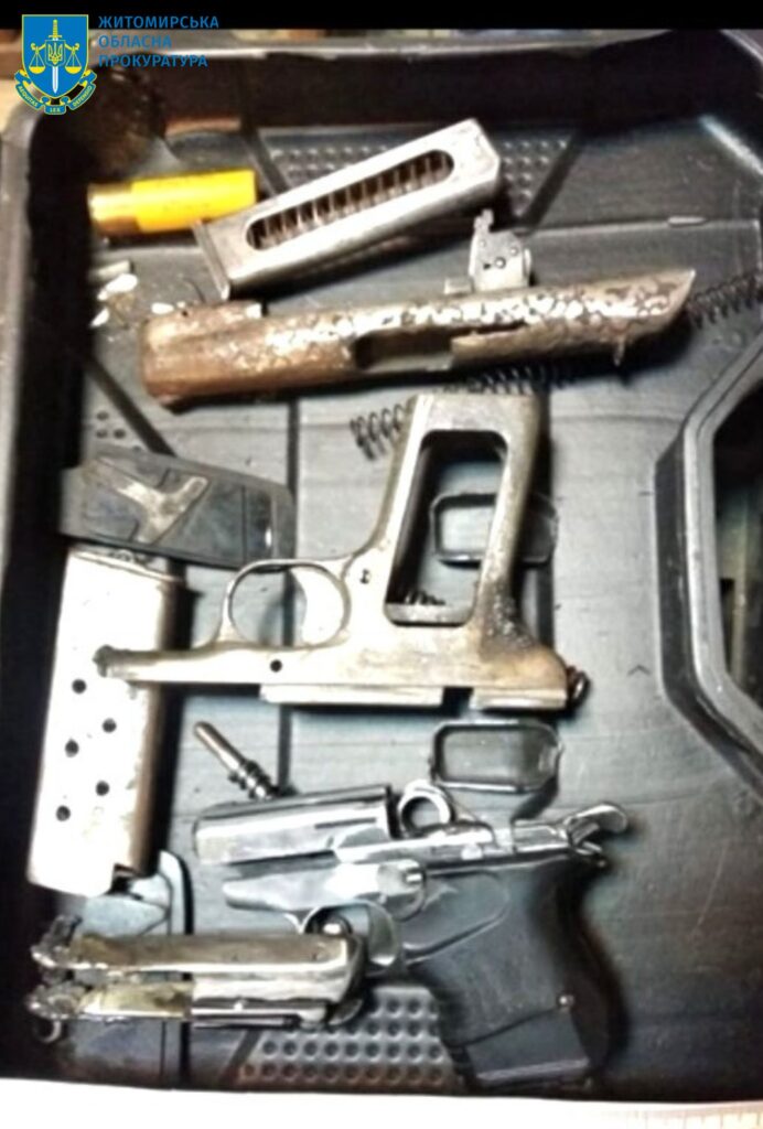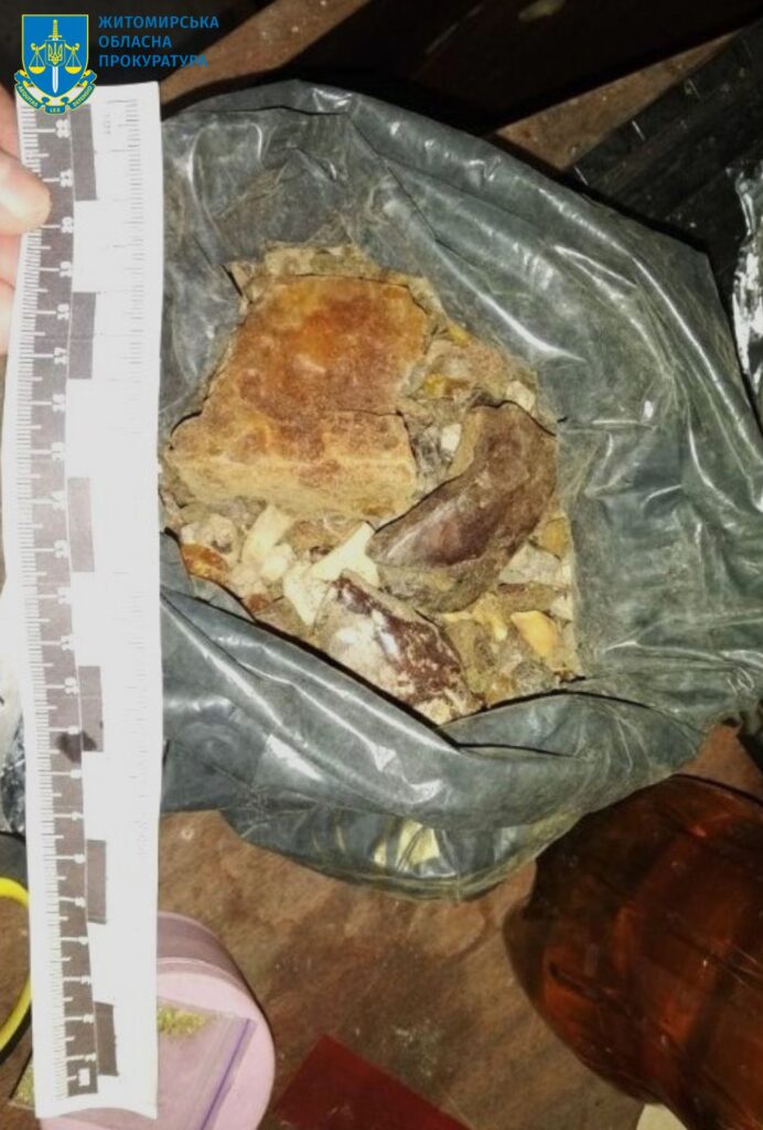 Жителя Коростенського району визнано винним у незаконному зберіганні бурштину, незаконному поводженні зі зброєю, бойовими припасами і вибуховими речовинами, а також у незаконному придбанні, зберіганні, перевезенні та збуті наркотичних засобів і психотропних речовин у великому розмірі, – повідомляє Житомирська обласна прокуратура.