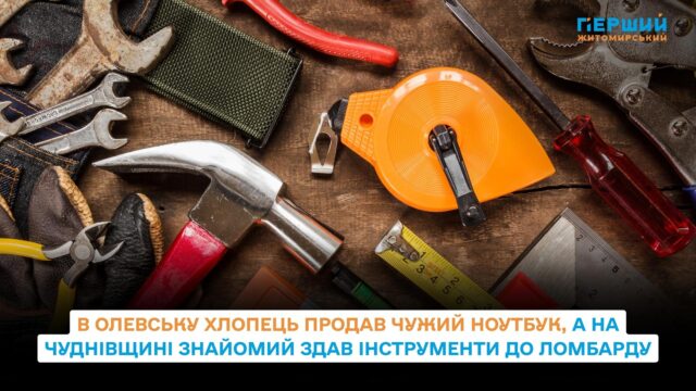 Ще один випадок стався у Чуднівській громаді. 39-річний чоловік позичив знайомому електроінструменти з умовою, що їх повернуть наступного дня. Натомість 42-річний житель області відвіз майно до Житомира і здав у ломбард.