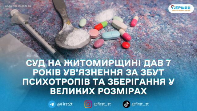 Жителя Житомирського району засудили до 7 років позбавлення волі з конфіскацією майна за незаконне придбання та зберігання психотропів у великих розмірах, а також за незаконне придбання, зберігання та збут особливо небезпечної психотропної речовини PVP. Про це повідомили в Житомирській окружній прокуратурі.