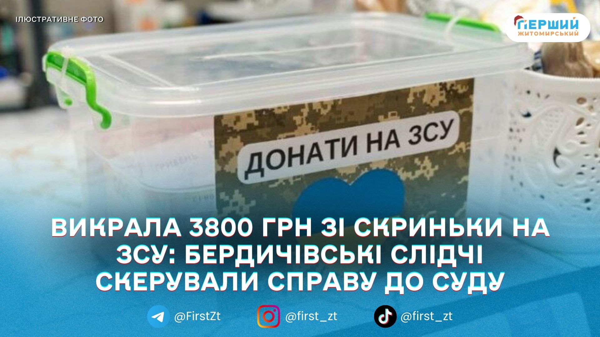 У Бердичеві правоохоронці завершили досудове розслідування щодо 22-річної місцевої жительки, яку підозрюють у крадіжці благодійної скриньки з коштами на підтримку ЗСУ.