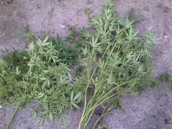 Також у домогосподарстві було виявлено зелені рослини конопель та специфічний пристрій для куріння наркотичного засобу.