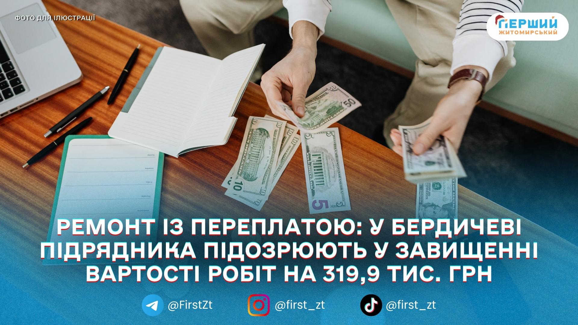 У Бердичеві правоохоронці повідомили про підозру підряднику, якого вважають причетним до привласнення бюджетних коштів, виділених на ремонт закладу освіти. Йдеться про майже 320 тисяч гривень, повідомили в ГУНП у Житомирській області.