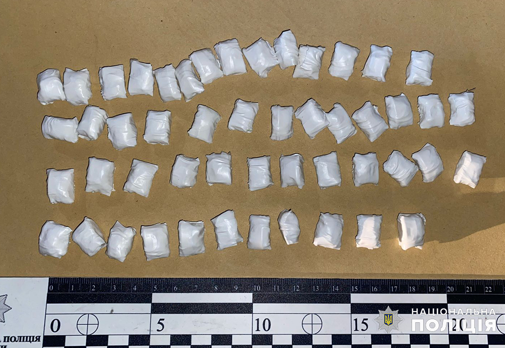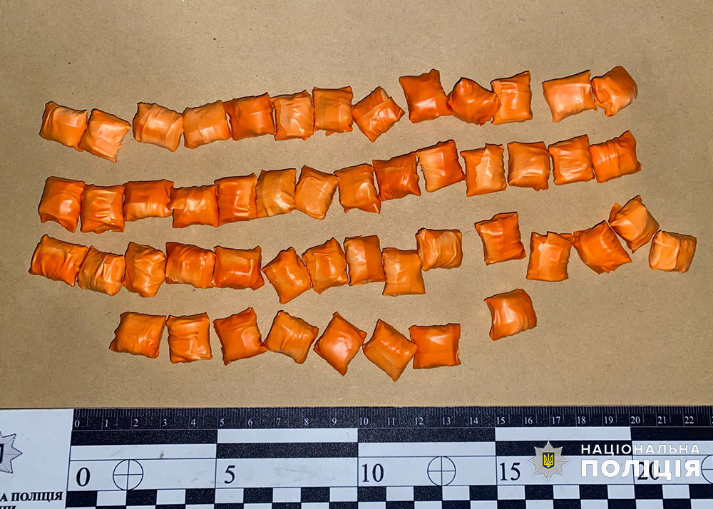 Під час обшуку в 23-річного жителя Коростишівської громади знайшли великий пакунок, скріплений скотчем. Усередині були 100 згортків із порошкоподібною речовиною, ймовірно, психотропною. Обшук за місцем проживання молодика також дав результати – поліцейські знайшли ще один пакет із наркотиками та пристрій для куріння. Усе вилучене відправили на експертизу.