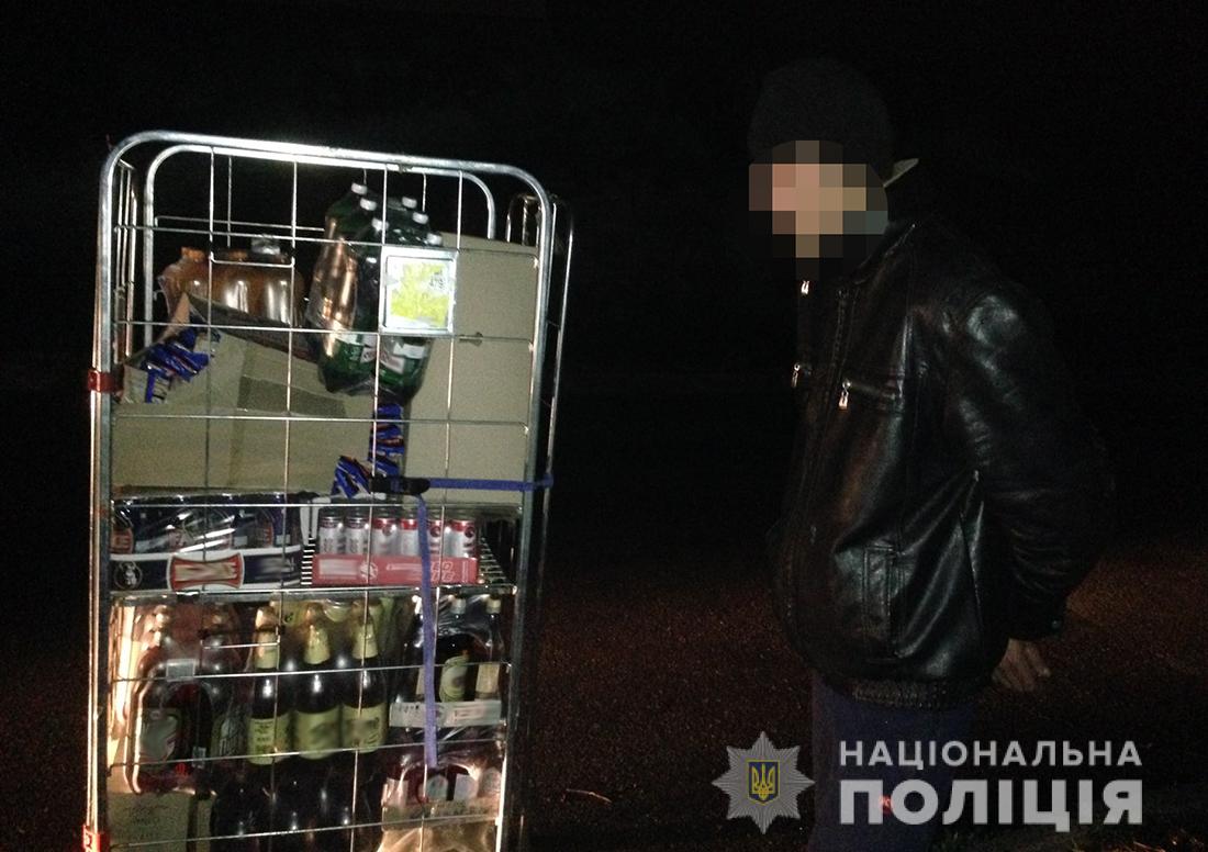 На місці події правоохоронці оглянули будівлю та помітили неподалік чоловіка, який намагався транспортувати візок з товарами.