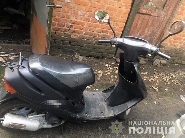 Скутер знайшли у с. Висока Піч за місцем проживання молодшого крадія. Їм загрожує обмеження воді чи тюрма на 3-5 років.
