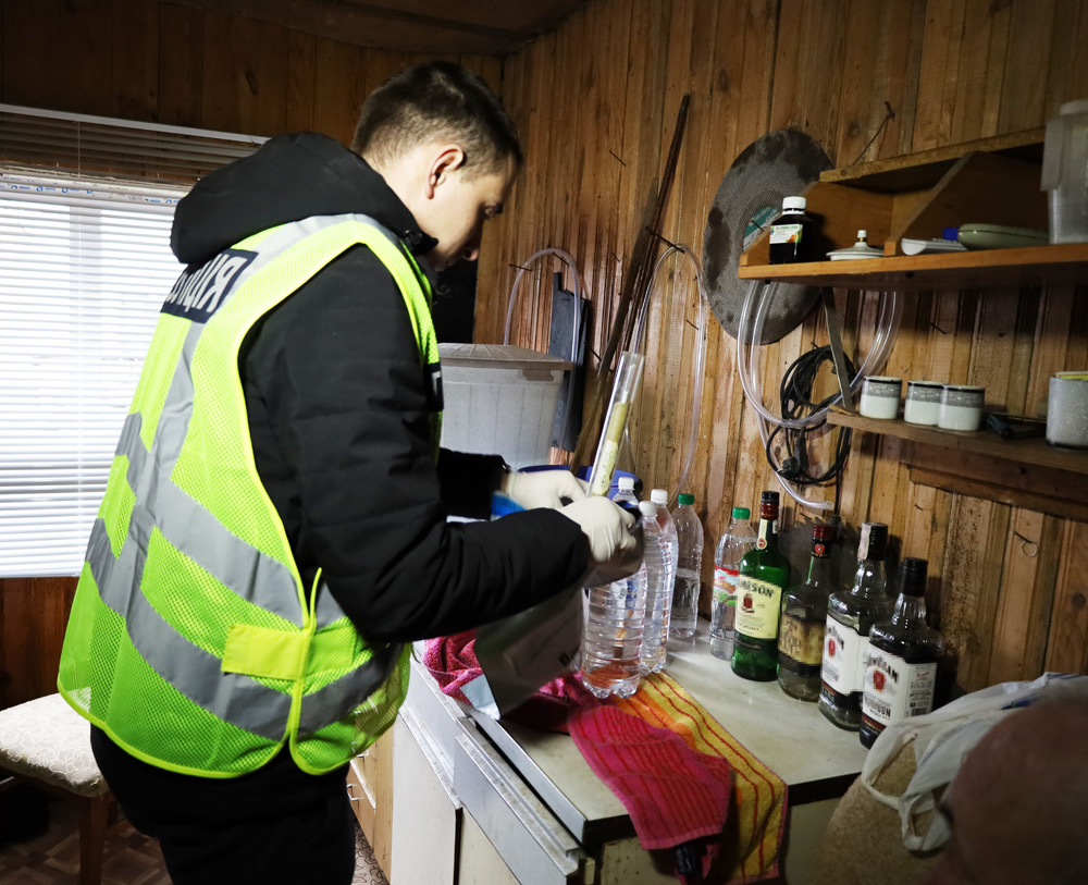 У квітні під час обшуків у злочинної груп. вилучили понад 15 тонн спирту вартістю близько 1,5 мільйона гривень, близько 800 тисяч гривень готівки, кілька десятків банківських карток та десятки мобільних телефонів, два легковики, бус та напівпричеп, пластикову тару для розливу, інші свідчення протиправної діяльності. За висновками експертиз, вилучена рідина є спиртом етиловим, однак не відповідає вимогам ДСТУ.