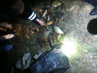 Близько 23 години в районі с. Щербатівка інспектори виявили 2 осіб, в яких в автомобілі знаходились 3 мішки заборонених знарядь лову (сіток) та незаконно добута риба, а саме: – 13 – лящів; 4 – линка; 3 – окуня.