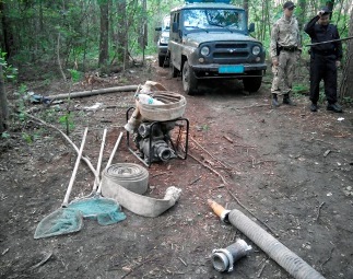 Працівники слідчо-оперативної групи, які прибули на місце події, вилучили з автівки мотопомпу кустарного виробництва, 4 пожежних рукави, водозабірник, сачки та металеві штирі.