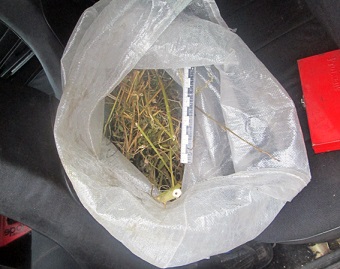 Під час зовнішнього огляду на задньому сидінні легковика правоохоронці виявили поліетиленовий мішок з сухими рослинами, за зовнішніми ознаками схожими на коноплі.