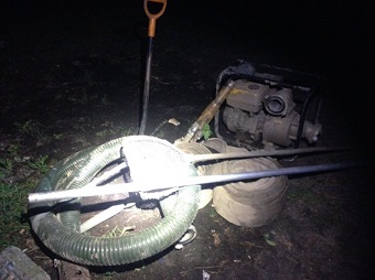 На місці події працювала слідчо-оперативна група поліції. Поліцейські вилучили помпу, пожежні рукави та водозабірний шланг, металевий стержень і сачок.
