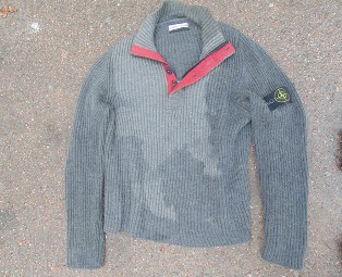 Був одягнений у штани спортивні чорного кольору, дві кофти сірого кольору, жилетку спортивну чорного кольору з літерою «R» на лівій грудній частині, труси в клітинку сірого та чорного кольору, шкарпетки чорного кольору, кросівки сірого кольору «Adidas» з білими вставками по боках, 44 розміру.