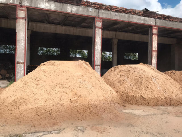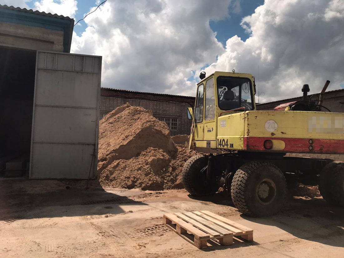 У серпні 2022 року поліцейські провели обшук у м. Коростені, на ділянці, що належить підприємцю. Там виявили автомобілі з піском у причепах та уже розвантажені тонни суміші.
