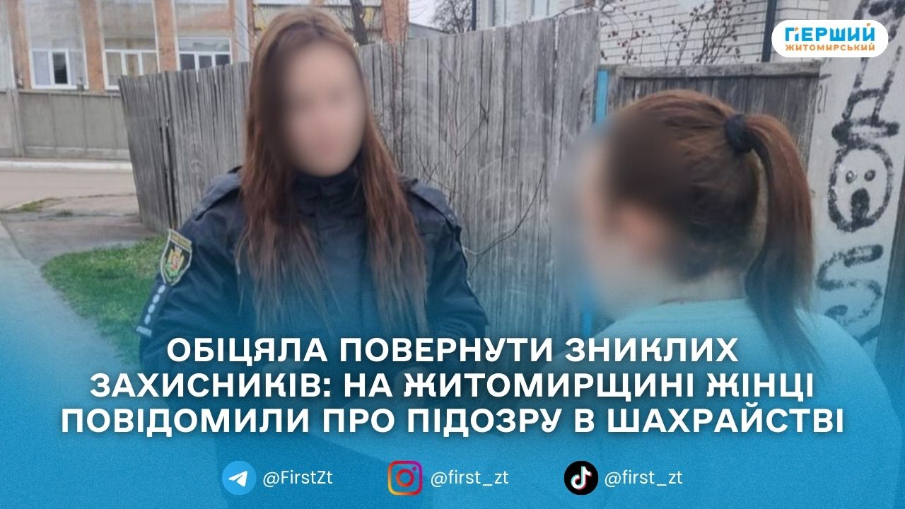 На Житомирщині жінці повідомили про підозру у шахрайстві, пов’язаному з вимаганням грошей у родичів безвісти зниклих військовослужбовців Збройних сил України. Про це поінформували в Житомирській обласній прокуратурі.