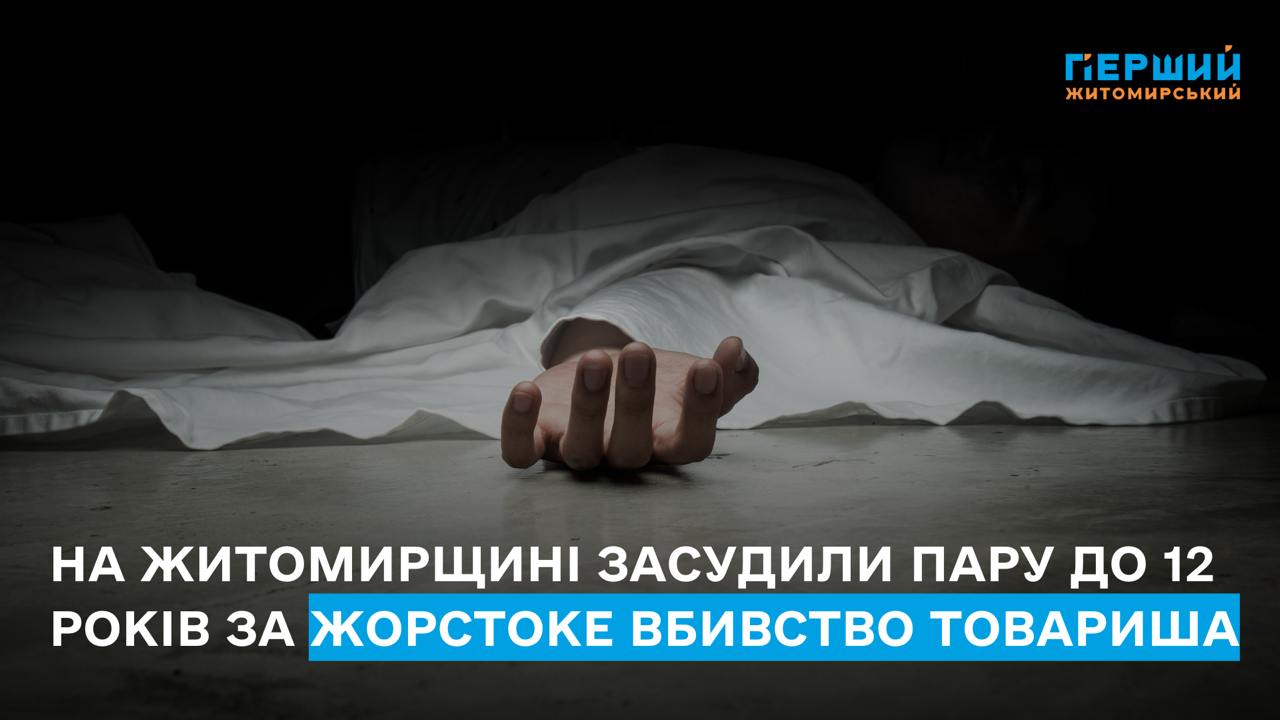 Богунський районний суд м. Житомира засудив чоловіка та жінку до 12 років позбавлення волі за жорстоке вбивство товариша. Під час судового розгляду прокурори Коростишівської окружної прокуратури довели вину засуджених у скоєнні злочину за п. 4 і п. 12 ч. 2 ст. 115 та ч. 1 ст. 297 Кримінального кодексу України.