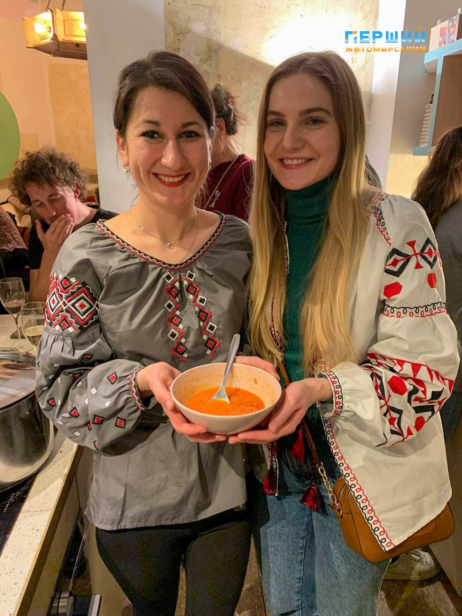 На «Вечорницях» повністю заборонена російська мова, можна спілкуватися українською чи англійською. Навіть назви страв та продуктів не перекладає. Справжній фаворит серед гостей – борщ.