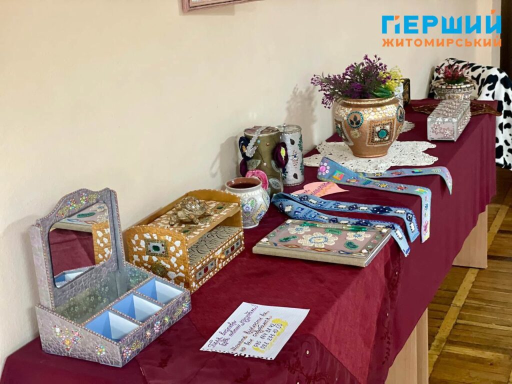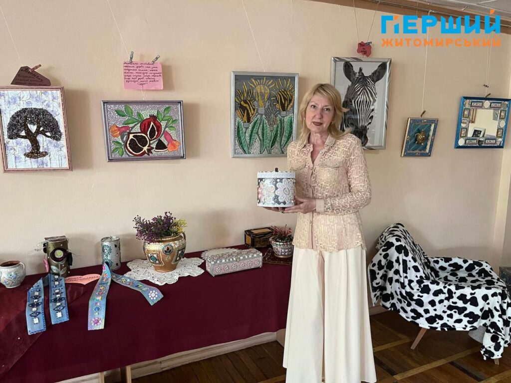 Пані Ірина родом із Луганська, але з 2014 року була змушена починати життя з чистого листка. Підтримати майстриню житомиряни та гості міста можуть, відвідавши виставку, а також придбати будь-яку із 50 робіт (після завершення виставки планується повний розпродаж).