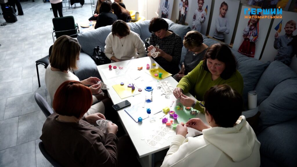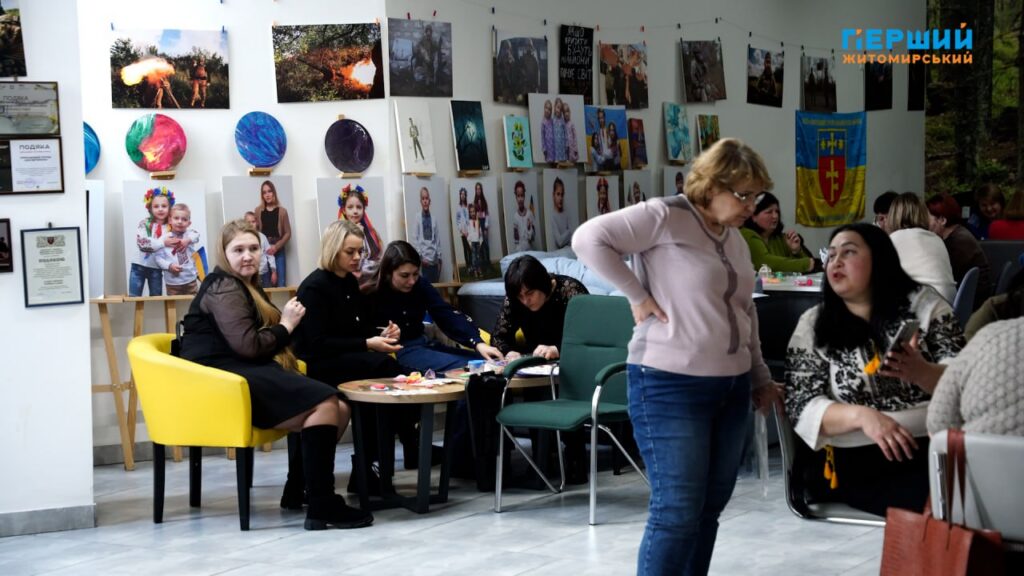 У День української жінки, 25 лютого, відбулась зустріч з елементами арт-терапії для жінок-фахівчинь, які працюють із ветеранами, родинами загиблих та сім’ями військових у громадах Житомирської області.