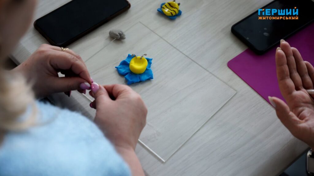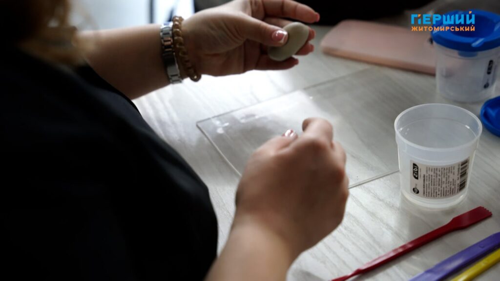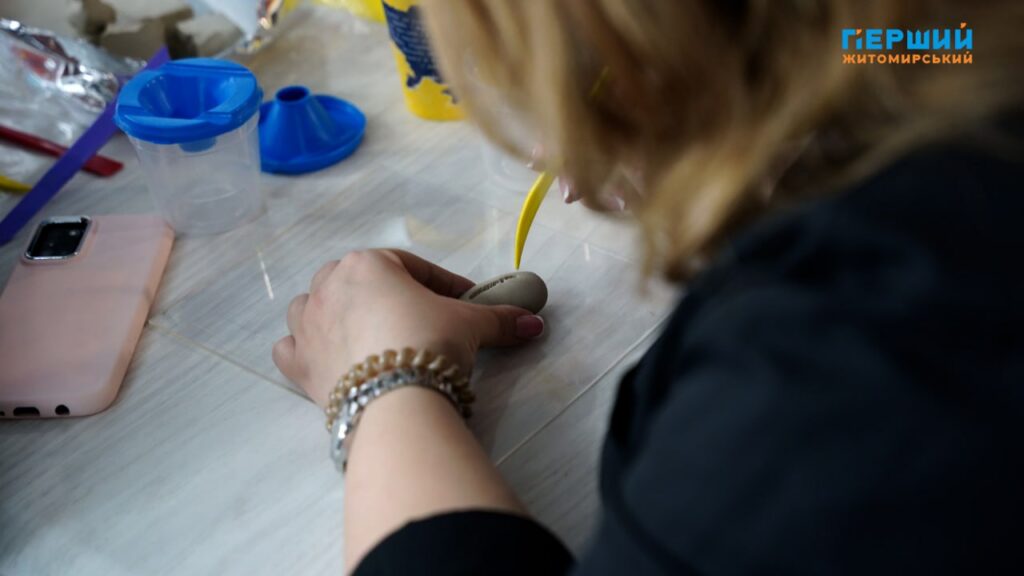 “Ліпимо те, хто, що захотів. У мене вода, рибка. Для мене місце сили – це вода. Я там завжди заспокоююся від того, як хвилі переливаються”, – ділиться Ірина, учасниця арт-терапії.