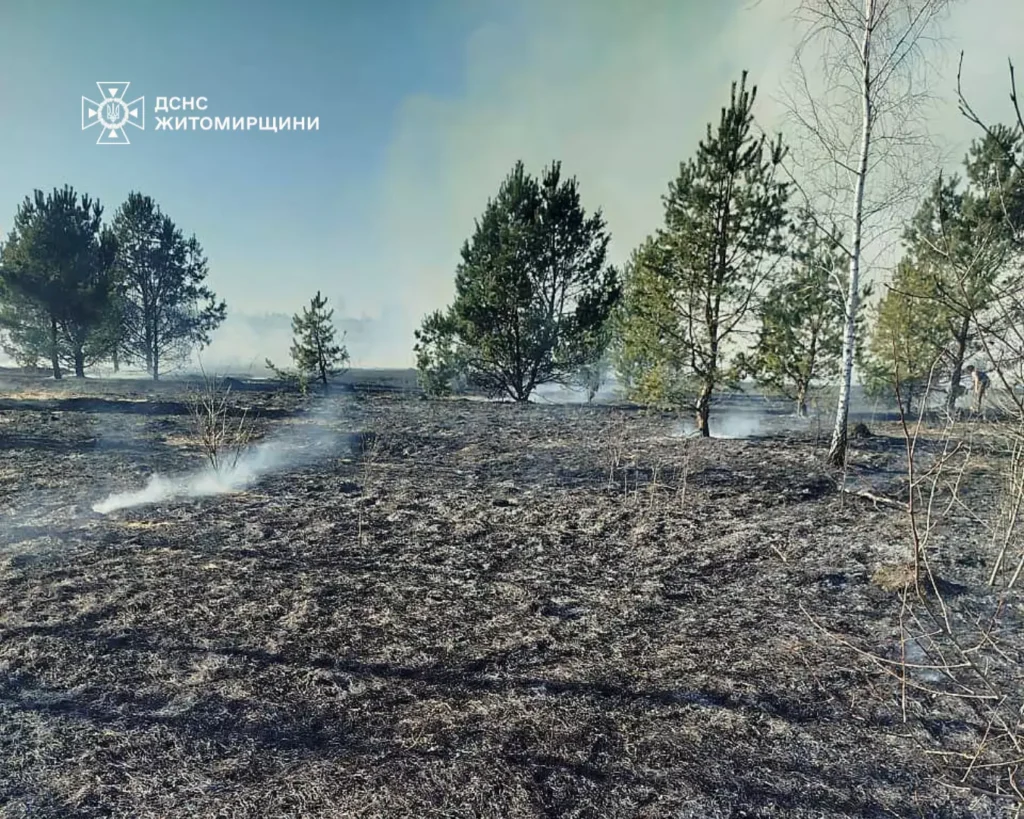 За даними рятувальників, загоряння сталися у Житомирському та Коростенському районах. Загалом вогнем пройдено понад 1,2 гектара території.
