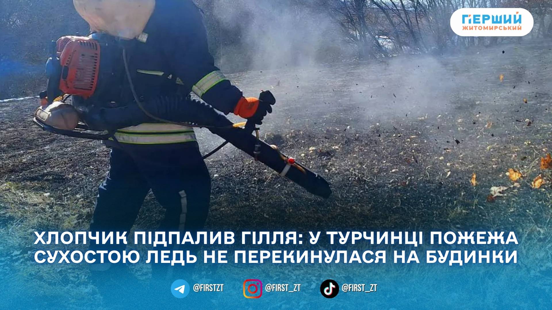Одна з пожеж виникла на відкритій території у селі Турчинка Житомирського району. Там існувала загроза поширення полум’я на житлові будинки. Пожежу рятувальники ліквідовували спільно з вогнеборцями місцевої пожежної охорони села Нова Борова.