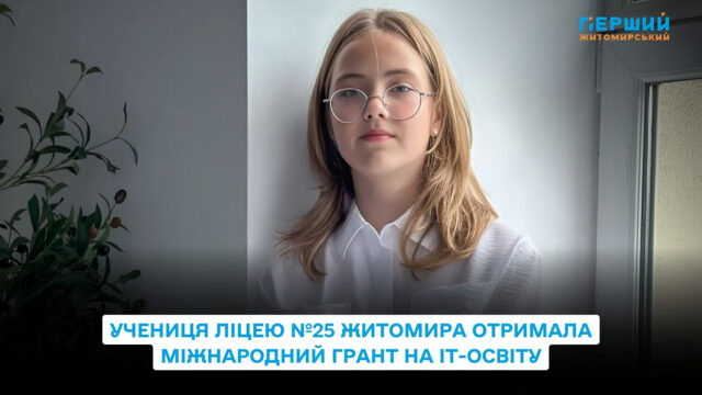 Учениця 7-Б класу житомирського ліцею №25 Вікторія Сердійчук здобула міжнародний грант від мережі IT-освіти «Гранд». Сума підтримки складає 55 тисяч гривень. Про це повідомили у Житомирській міській раді.
