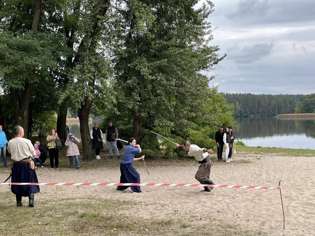 Гості свята стали свідками показового бою на шаблях у виконанні ветеранів-козаків, а також частувалися стравами польової кухні — кулішем, пловом та борщем.