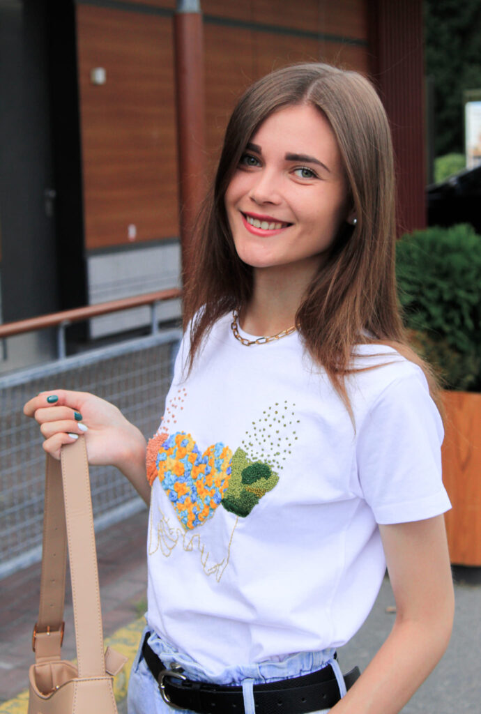 «Моїми клієнтами здебільшого стають ідейні люди, які підтримують нашу країну – дотичні до влади, військові, чиновники, волонтери або просто поціновувачі унікальних речей. За увесь час вишила близько 200 футболок, тож вірогідність того, що ти зустрінеш когось на вулиці в такому ж вбранні – дуже мінімальна. Близько 10% моїх виробів було відправлено за кордон. Це пов‘язано з тим, що багато людей були змушені виїхати через війну. Також такі футболки дарували представникам іноземних благодійних фондів, які допомагали Україні, Олені Зеленській, дружині Подоляка та інші, – говорить Дарія Данильчук зі Звягеля. – Футболки із вишивкою – це універсальна річ, яку можна вдягнути на прогулянку або навчання, в офіс, на будь-який захід і завжди виглядати стильно та актуально. На відміну від класичної вишиванки чи вишитої сороки, такі футболки можна носити щодня, не чекаючи особливої нагоди».