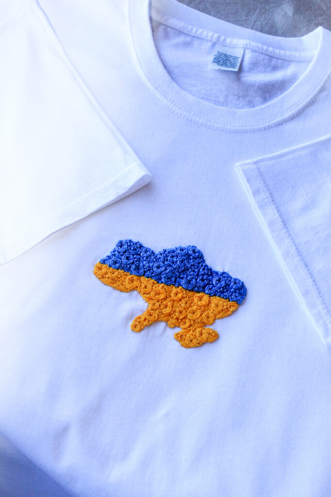 Переважна кількість принтів у майстрині – на патріотичну тематику. Зізнається, у планах було вишивати дитячі речі – щось ніжне та миле, але майже одразу на неї вийшов благодійний фонд з пропозицією виготовити патріотичні футболки на аукціон, тож далі продовжила працювати у цьому напрямку.