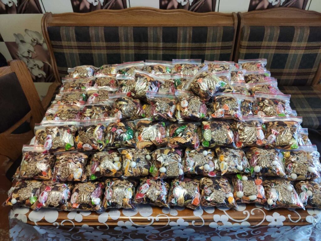 «Перші посилки, які ми збирали за кошти від волонтерських ініціатив сина, передавали у ліцей №6. Усе необхідне для армійців – шкарпетки, солодощі, супи і вермішель швидкого приготування, засоби гігієни, серветки, Алі з бабусею купували і відносили це у навчальний заклад. Далі з іншою допомогою все відправлялося до десантників 95 бригади. Пізніше ми почали напряму співпрацювати із волонтерами, які опікуються військовими на фронті. Через них так само кілька разів передавали шкарпекти, продукти, печиво – це те, що просять, – ділиться мама юнака. – Останнім часом купували ліки. Було і на півтори, і на три та на чотири тисячі гривень. Все, що вдається зібрати співом – віддає на придбання необхідного. До кожної коробки додає якісь вироби, іграшки, обереги для оборонців. Зараз продовжує виходити співати на годину-дві після 14, бо потреби у захисників є постійно. Люди підходять, дякують, тиснуть руку, обіймають, хто кидає 5 гривень, хто менше чи більше».