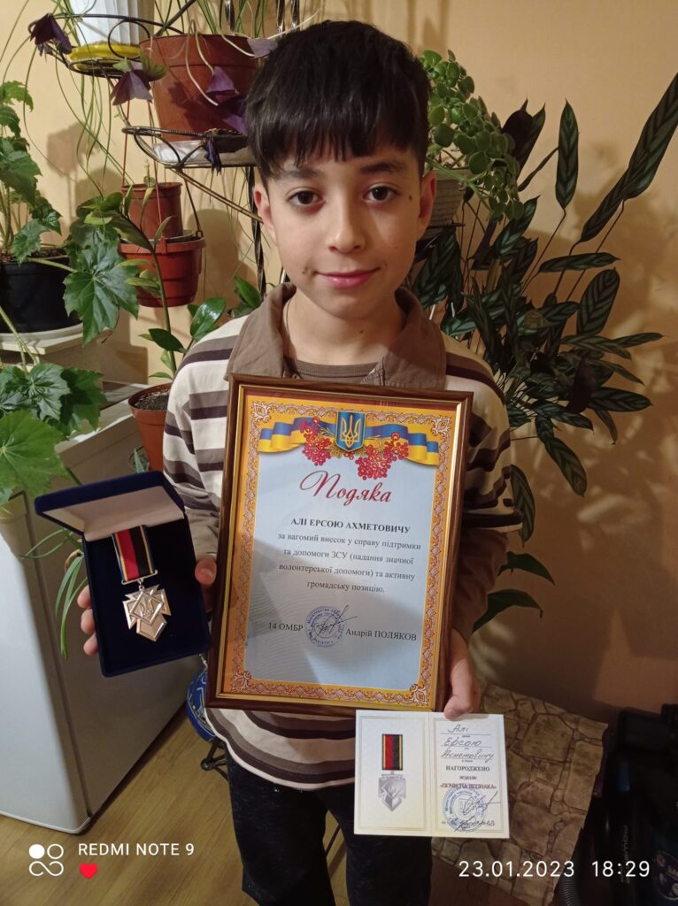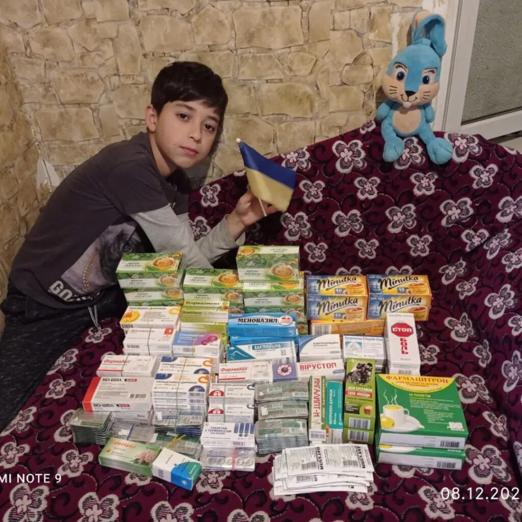 У цій родині волонтерять усі: поки бабуся з мамою збирають тканину для пошиття білизни воїнам, матеріали для окопних свічок, речі, продукти, консервацію та сухофрукти на передову, 10-річний Алі теж постійно знаходить спосіб підтримати захисників.