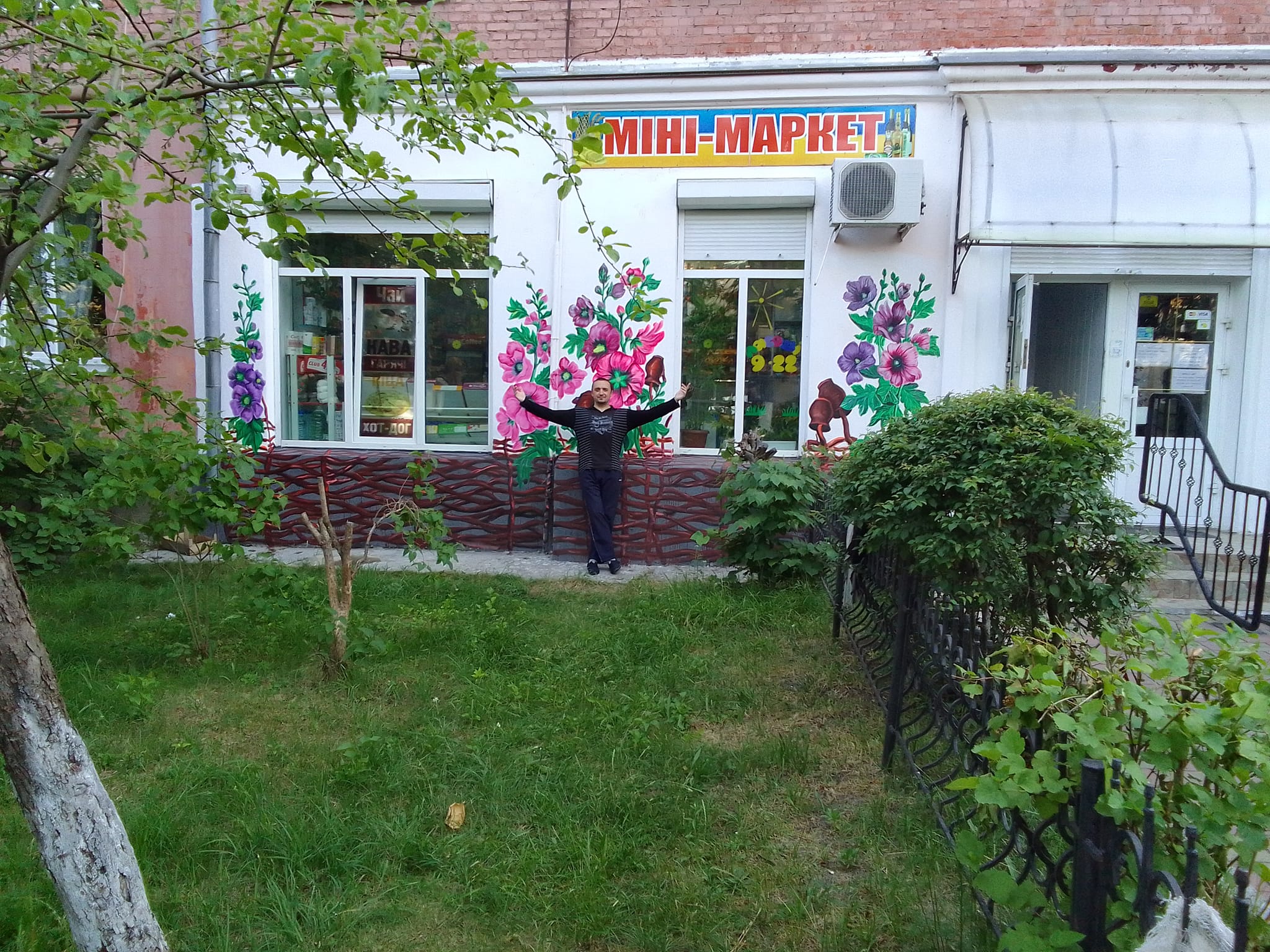 Загалом, стінопис розміром 150 на 200 см намальований акриловими фарбами. Також Мурал «Мальви» є стилістичним зображенням квітів і тину з глечиками на фасаді магазину. Його розміри 200 на 700 см, він теж намальований акриловими фарбами.