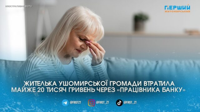 На Житомирщині 68-річна жителька Ушомирської громади втратила майже 20 тисяч гривень після телефонної розмови з псевдопрацівниками банку.