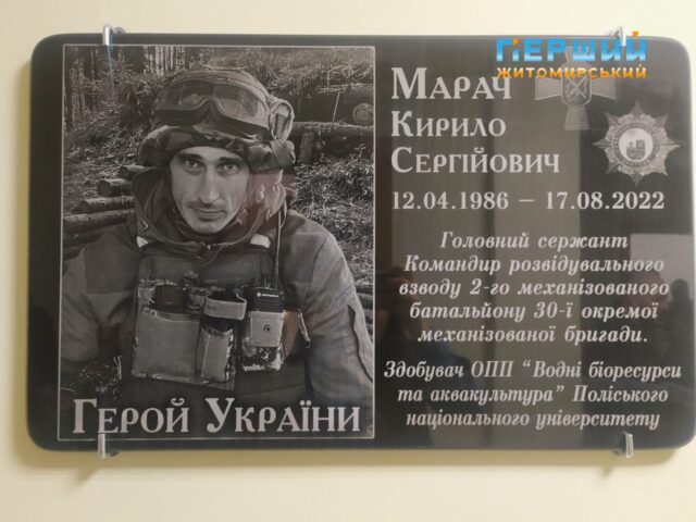 Кирило Марач – один із тих, чию молодість і життя забрала ця визвольна війна. Він свідомо обрав військову справу та боронив країну на різних напрямах. Загинув під час звільнення Харківщини. Тепер рідні, близькі та друзі вшановують пам’ять загилого Героя з Житомирщини.