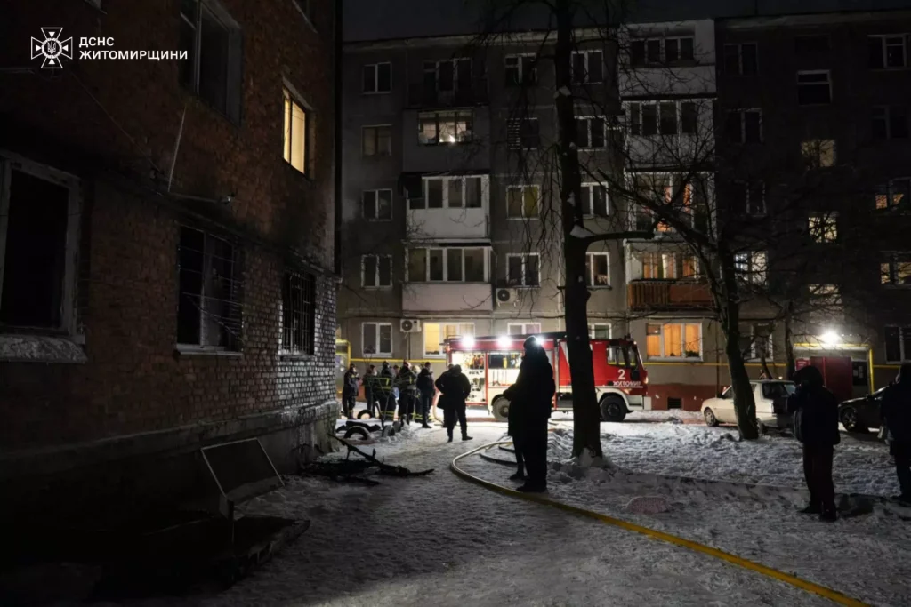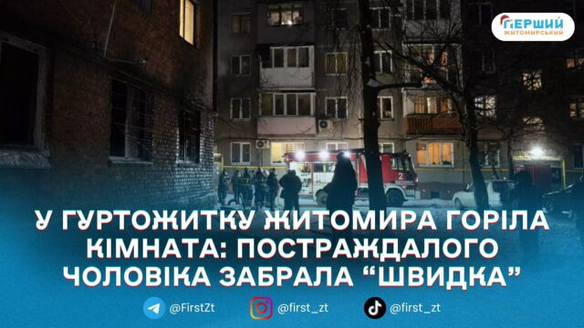 Пожежа сталася 1 січня в одному з гуртожитків Житомира. Як повідомили в ГУ ДСНС у Житомирській області, виклик на лінію «101» надійшов о 17:59. Займання виникло в кімнаті на першому поверсі 4-поверхової будівлі.