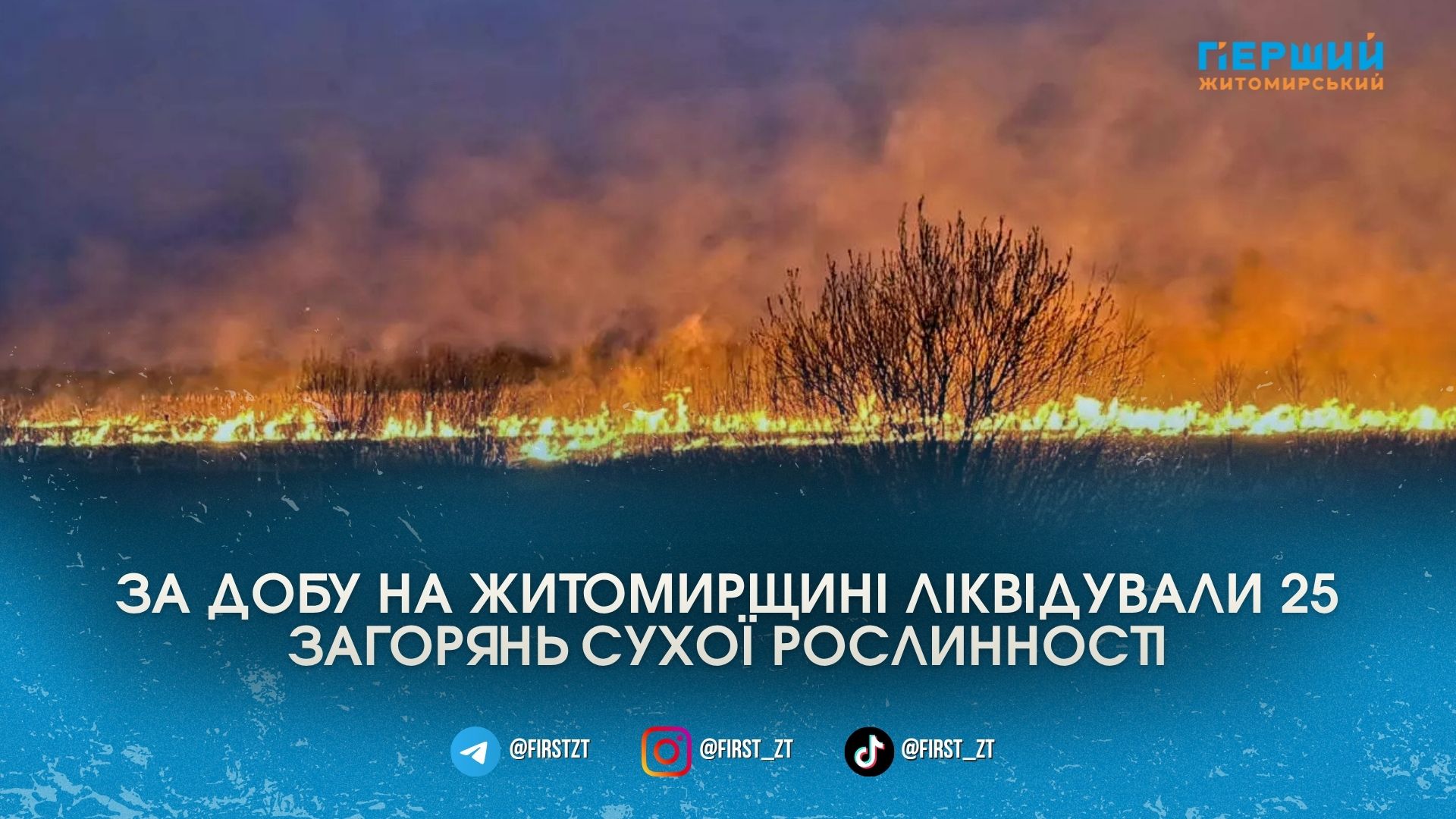 У Житомирській області за минулу добу сталося 25 загорянь сухої рослинності. Вогнем пройдено майже 22 гектари території. Про це повідомили в ГУ ДСНС у Житомирській області.
