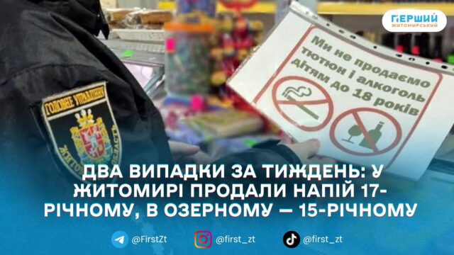 За інформацією правоохоронців, у Житомирі продавчиня одного з торговельних закладів продала слабоалкогольний напій 17-річному місцевому жителю. Ще один випадок зафіксували в селищі Озерне — там продавчиня реалізувала такий напій 15-річному юнаку.