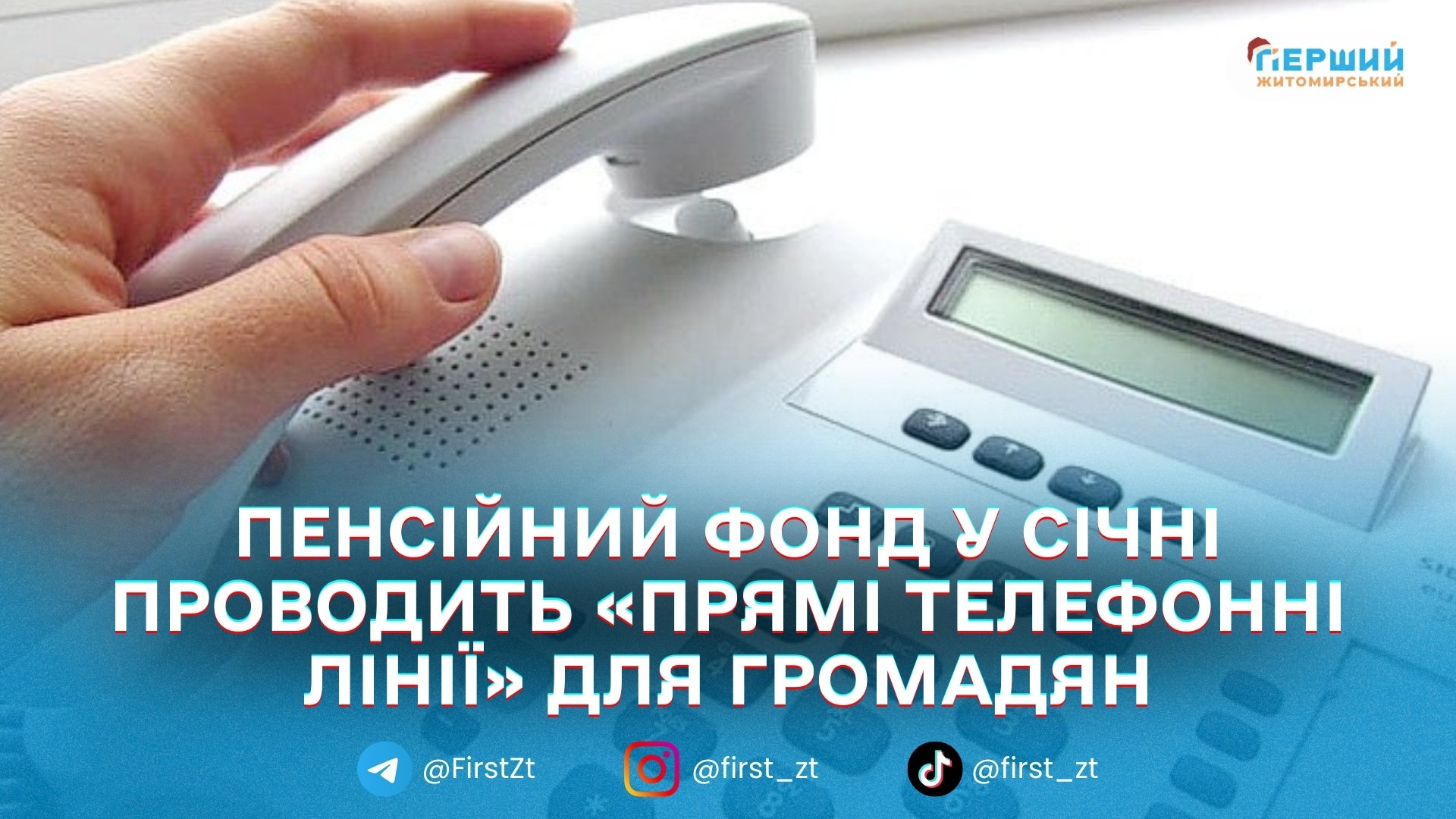 У січні 2026 року Головне управління Пенсійного фонду України в Житомирській області проводитиме «прямі телефонні лінії» для розгляду звернень громадян. Про це повідомили в Житомирській обласній військовій адміністрації.
