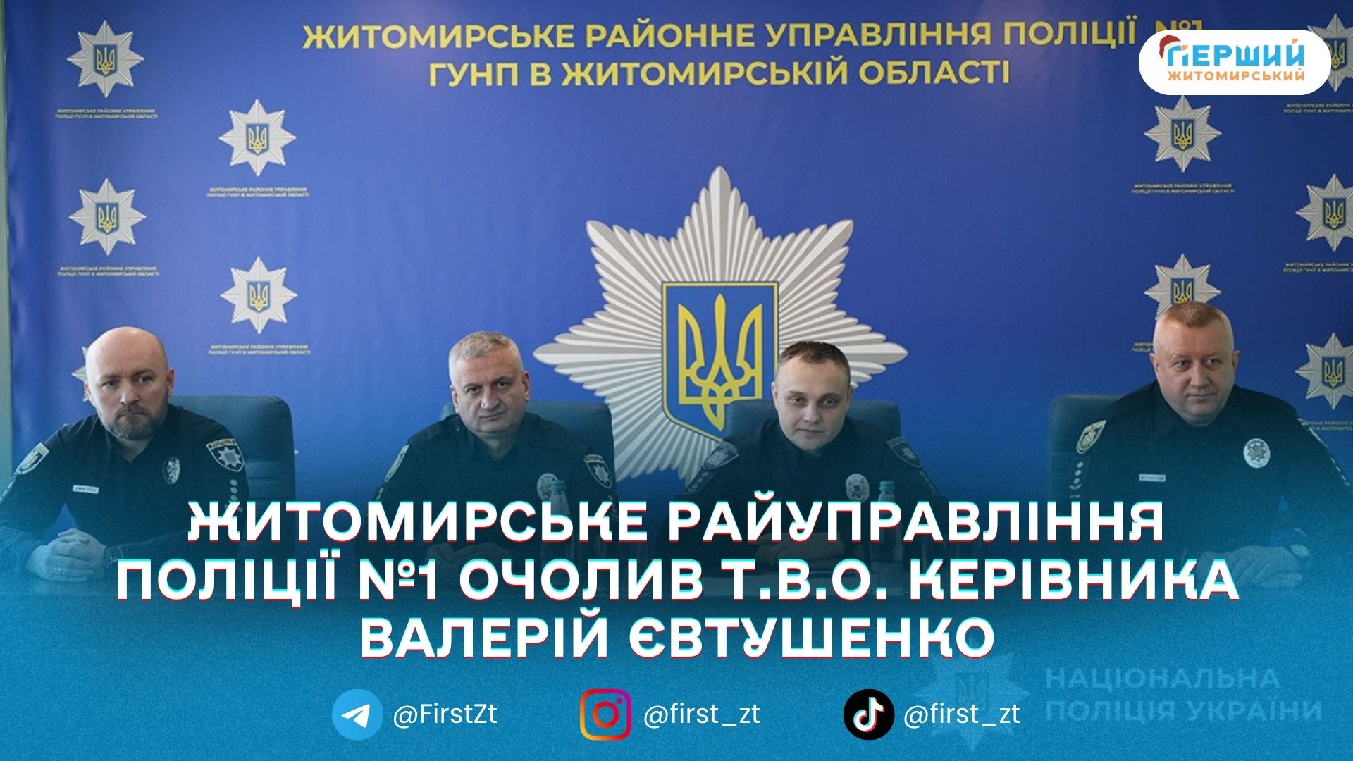 У Житомирі 27 січня призначили тимчасово виконуючого обов’язки керівника Житомирського районного управління поліції №1. Підрозділ очолив полковник поліції Валерій Євтушенко. Про це повідомили в ГУНП у Житомирській області.