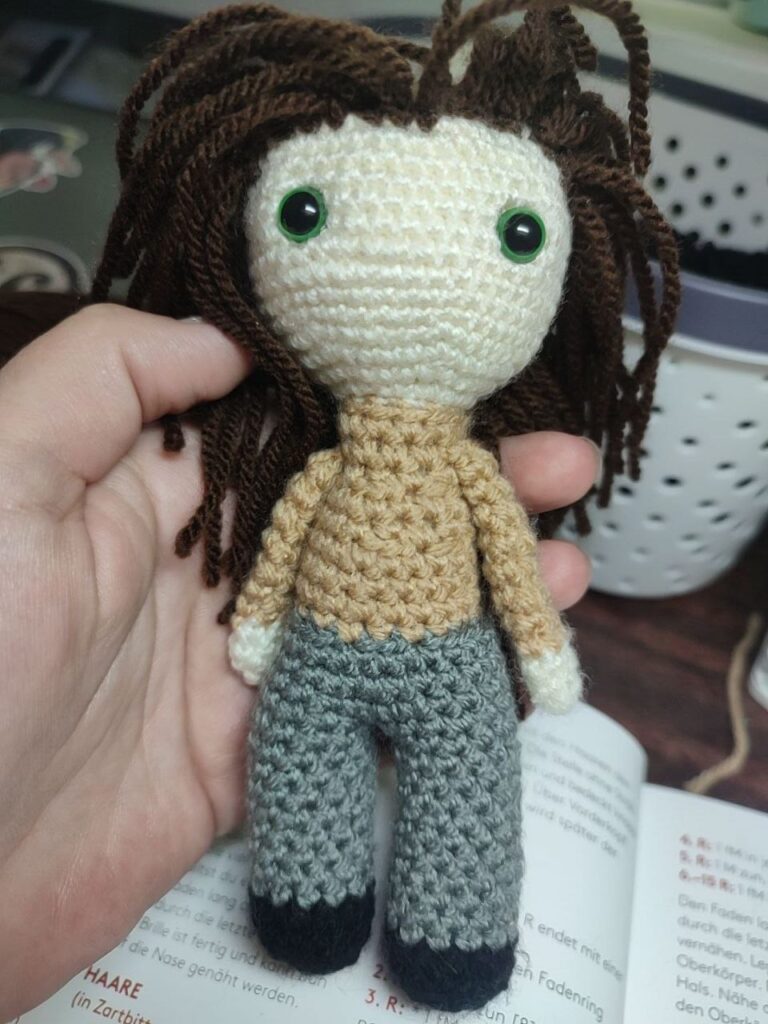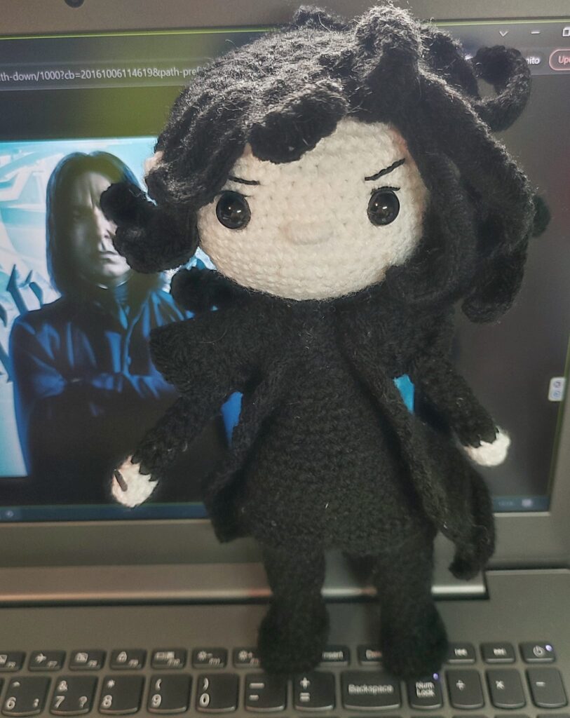 «Я тоді активно вчилася, проходила додатковий курс з кризової психології. Просто слухати лекції було якось непродуктивно. Випадково, гортаючи стрічку, побачила іграшки, зв’язані гачком. Це були персонажі з «Гаррі Поттера». Я подумала: «Вау! А що, так можна?». Почала все гуглити, дивитися майстер-класи, вчитися, – продовжує Ніна. – Звісно, перші іграшки були геть прості та не дуже якісні: миша, котик. Потім молодший син зрозумів, що я можу робити іграшки, тож деякий час в’язала персонажів ігор та мультиків. Мої ляльки – не «миленькі», крім зв’язаних безпосередньо для діток. Не в’яжу зайців, плюшеві іграшки, більше щось фентезійне або по улюбленим творам. Мультики та ігри типу «Майнкрафт» – не те, що мені цікаво, адже потрібна щирість емоцій, аби іграшка вдалася. Не вважаю себе майстринею, бо все ще вчуся і лише останні два місяці вироби не соромно показувати людям. В’яжу для дорослих – іграшки, брелоки, інтер’єрні ляльки. Для дитини, крім сина, в’язала один раз і не впевнена, що буду ще. На замовлення працювати не дуже люблю, хоча роблю це, якщо просять. Справа в тому, що на створення однієї іграшки потрібно приблизно 8 годин, а в мене є основна робота, тому весь процес розтягується на тиждень-два. Ляльки – моє хобі, творчість, але тісно пов’язана з іншими напрямками діяльності. Якось зв’язала персонажів свого роману. Це психологія і рефлексія».