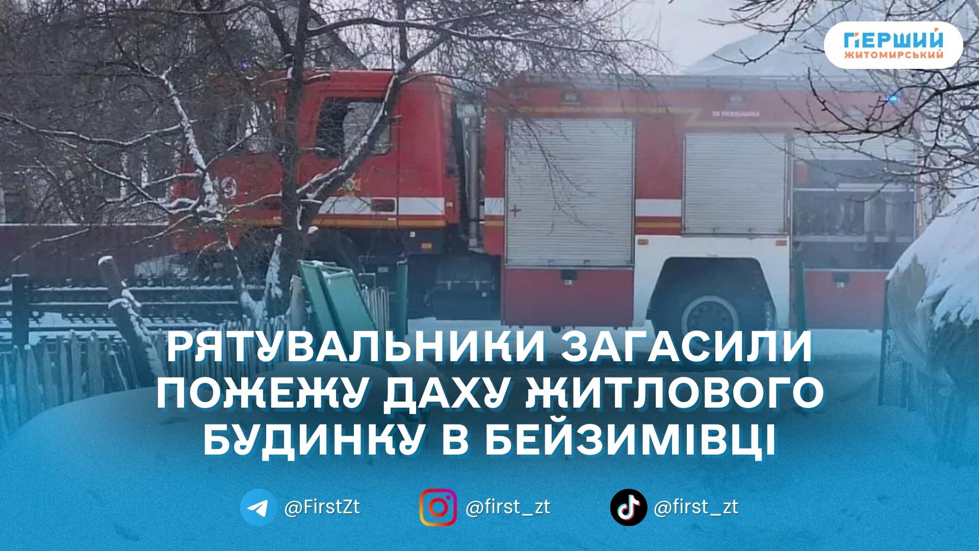 У селі Бейзимівка Житомирського району 16 лютого сталася пожежа в житловому будинку. На місці рятувальники встановили, що горить покрівля оселі, повідомили в ГУ ДСНС у Житомирській області.