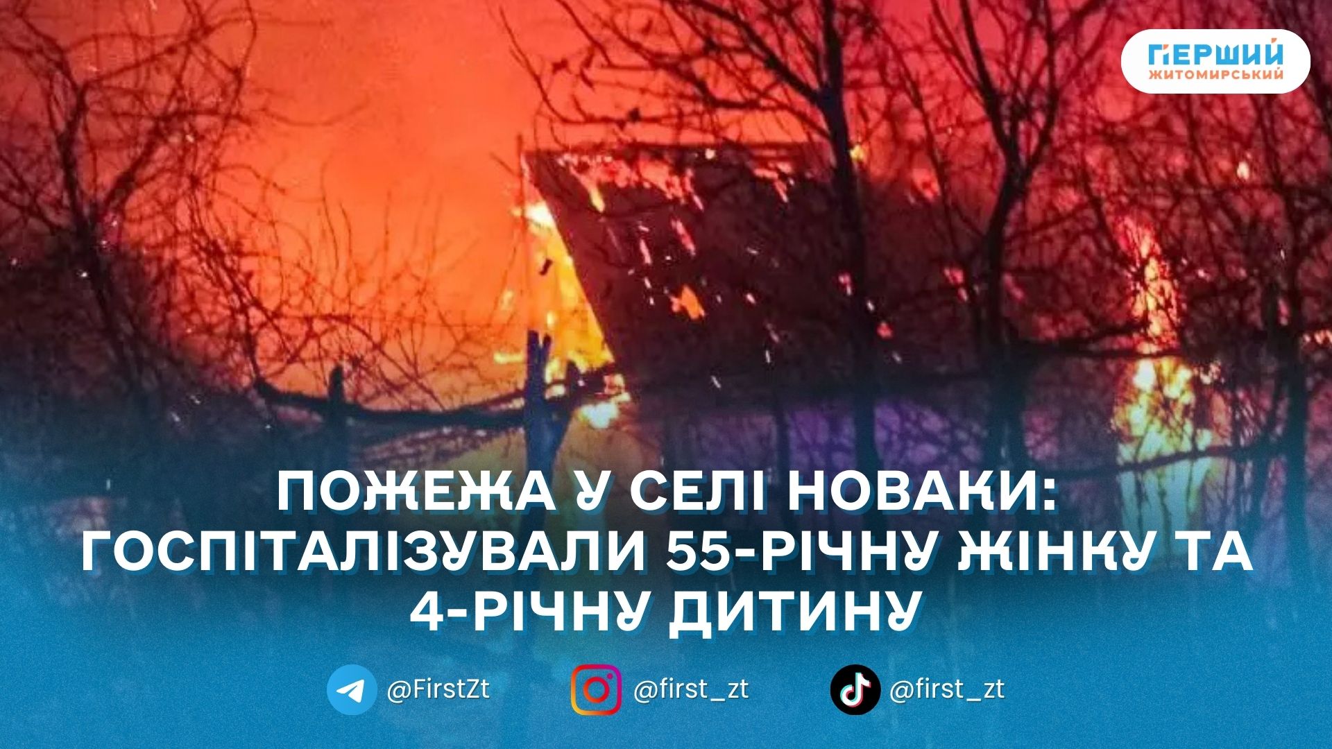 У Коростенському районі під час пожежі травмувалися двоє людей — 55-річна жінка та 4-річна дитина. Про це повідомили в ДСНС Житомирщини.