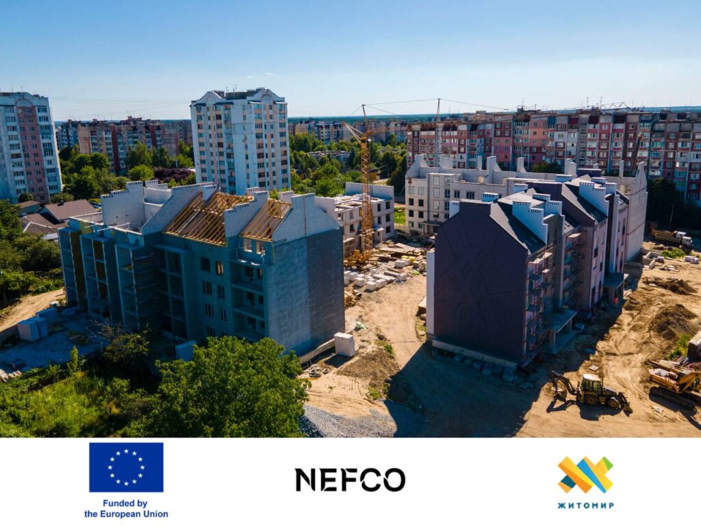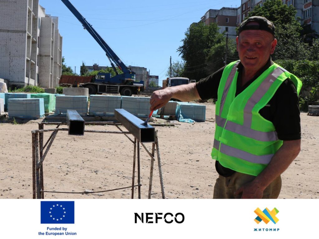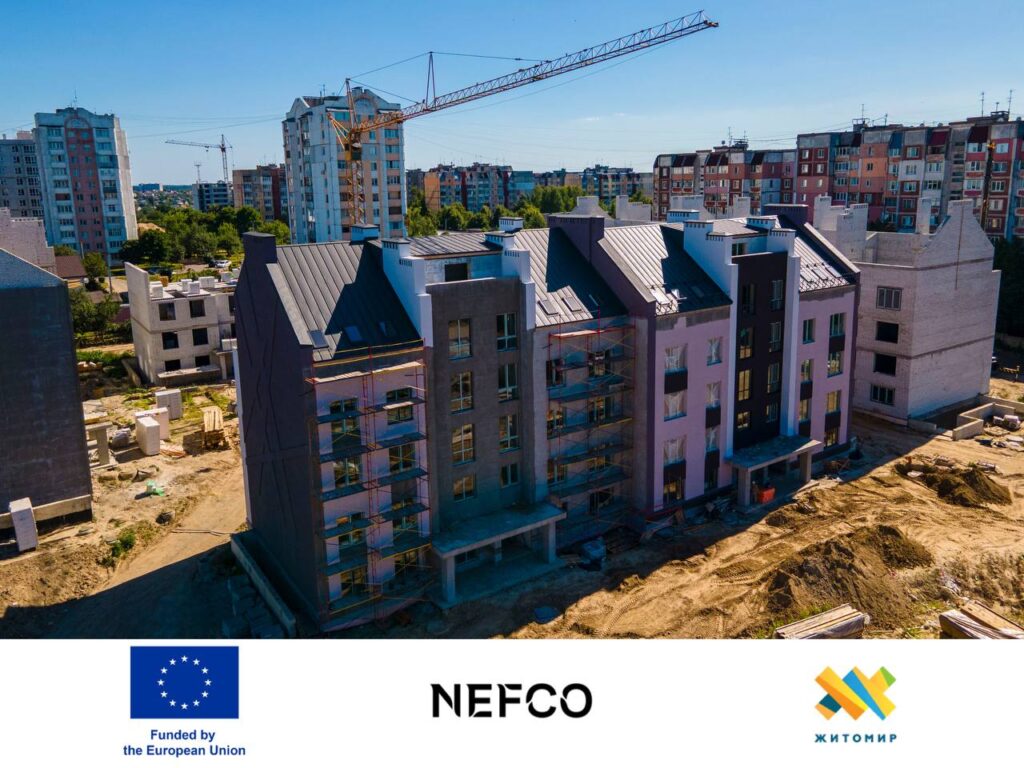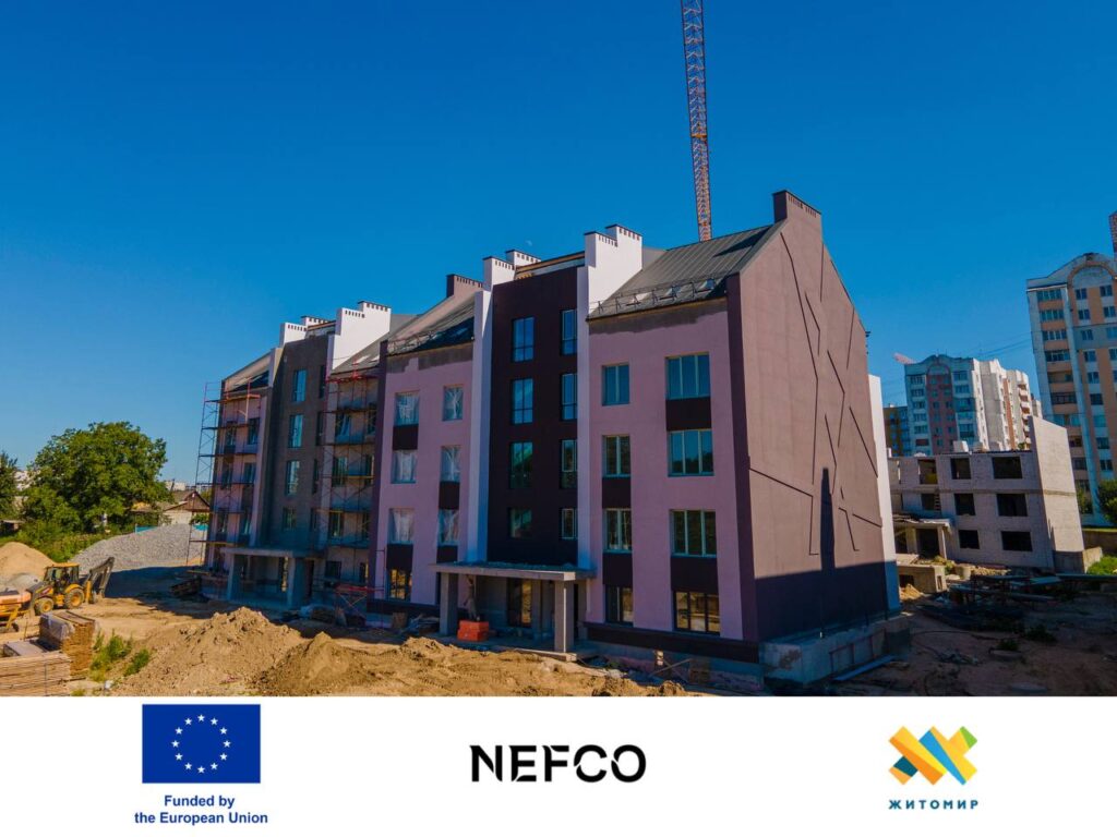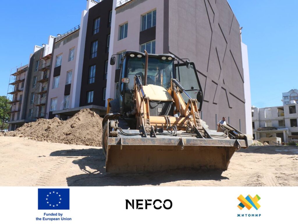 У Житомирі триває будівництво житлового комплексу для внутрішньо переміщених осіб (ВПО). Проєкт реалізується за підтримки Європейського Союзу у межах програми «Житло для ВПО та відновлення звільнених міст в Україні», під управлінням НЕФКО.