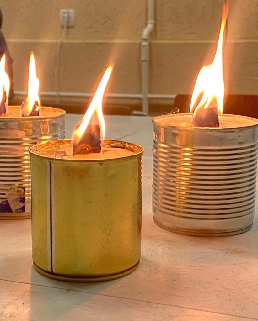 Основна вимога – бляшанки мають бути не вищі 7 см, а віск чи парафін без сторонніх домішків, адже тоді при використані виділяється неприємний запах і багато чорного диму.
