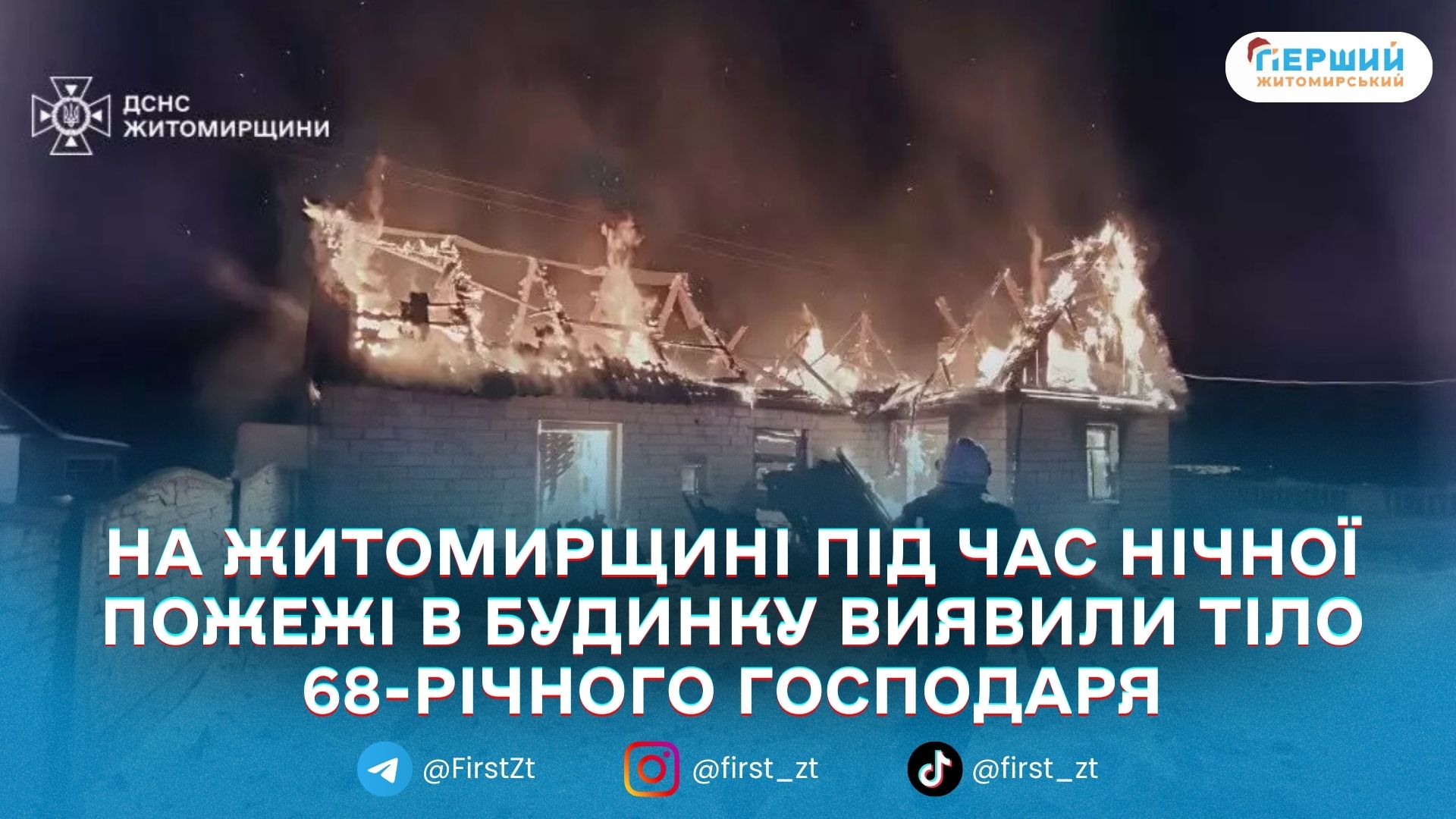 У селі Іванівка Житомирського району під час гасіння пожежі вночі 12 січня рятувальники виявили тіло 68-річного господаря. Про це повідомило ГУ ДСНС у Житомирській області.