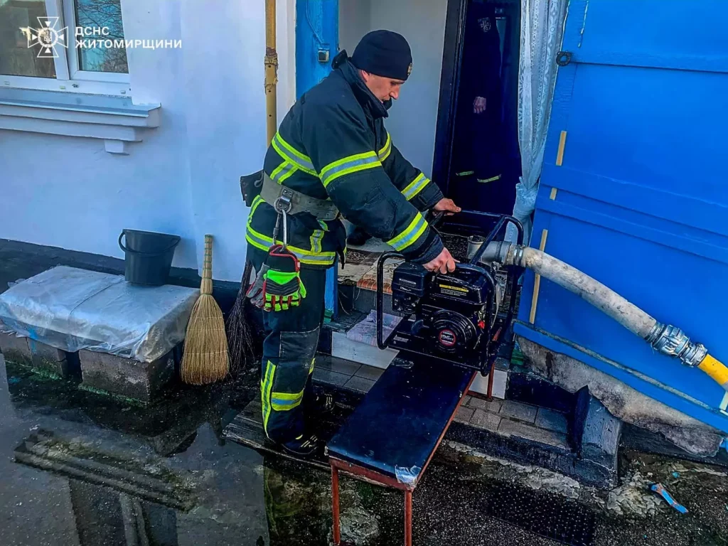 У селищі Пулини Житомирського району рятувальники відкачали ґрунтові води з підвалу приватного будинку. Про це повідомили в ГУ ДСНС у Житомирській області.