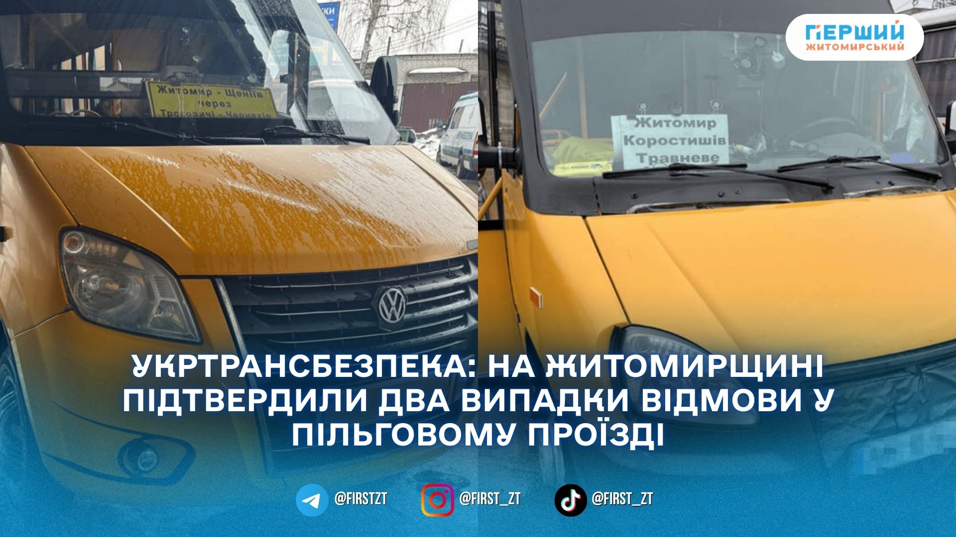 За інформацією відомства, на електронну пошту та Лінію інформаційної підтримки надійшли дві скарги щодо порушення прав пасажирів на маршрутах «Житомир — Травневе» та «Житомир — Щеніїв».