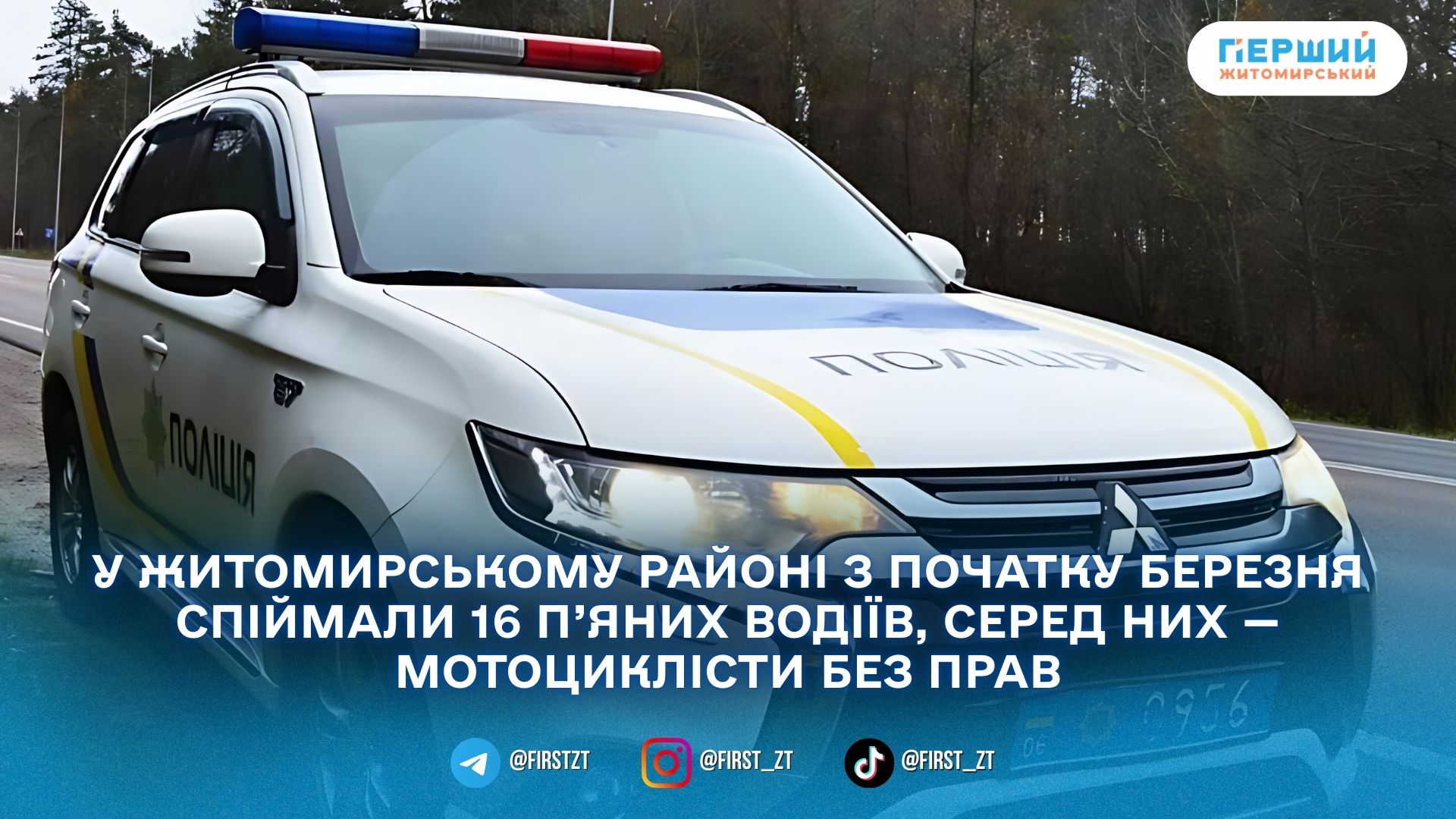 З початку березня поліцейські виявили на дорогах Житомирського району 16 водіїв у стані сп’яніння. Про це повідомили в ГУНП у Житомирській області.