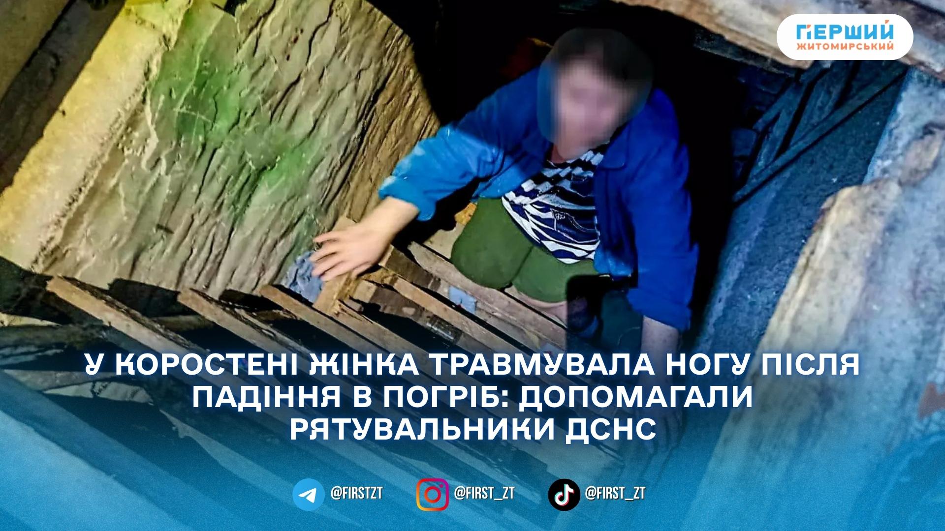 У Коростені рятувальники надали допомогу 65-річній жінці, яка впала в погріб і травмувала ногу. Про це повідомили в ГУ ДСНС у Житомирській області.