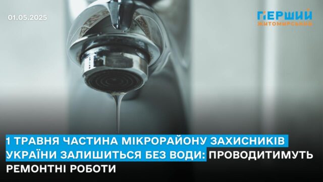 Комунальники попереджають про тимчасове припинення водопостачання у мікрорайоні Захисників України 1 травня. Причина — проведення робіт на насосній станції ІІІ-го підйому «Північно-Західна».