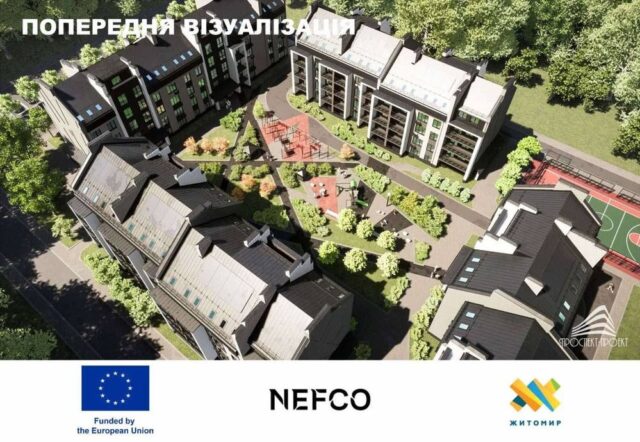 У Житомирі триває будівництво житлового комплексу для 116 родин внутрішньо переміщених осіб (ВПО). Проєкт фінансується Європейським Союзом і реалізується під управлінням НЕФКО.